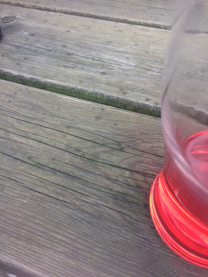Teeny tiny little raindrops on the table – it was the smallest shower imaginable!