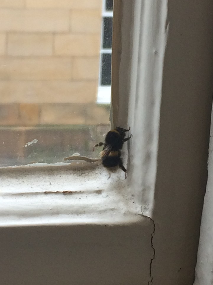 We eventually managed to get him out by gently opening the windows and guiding him with the blind. I called him Bruce – and here he is before he stopped trying to sting the window and took off back to his home!